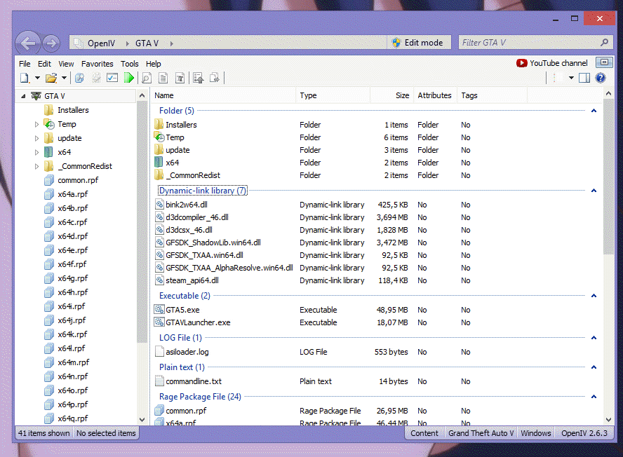 Для установки дополнений для ГТА 5, которые внесут серьёзные изменения в игру, придётся воспользоваться специальным редактором архивов Open IV.